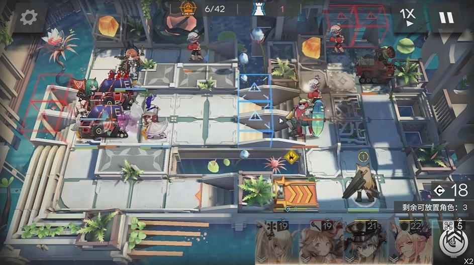 开局第一步先放置先锋,把先锋摆放在下方蓝点左侧三个格子的地方,方向朝左。