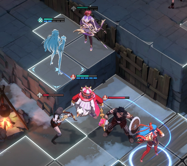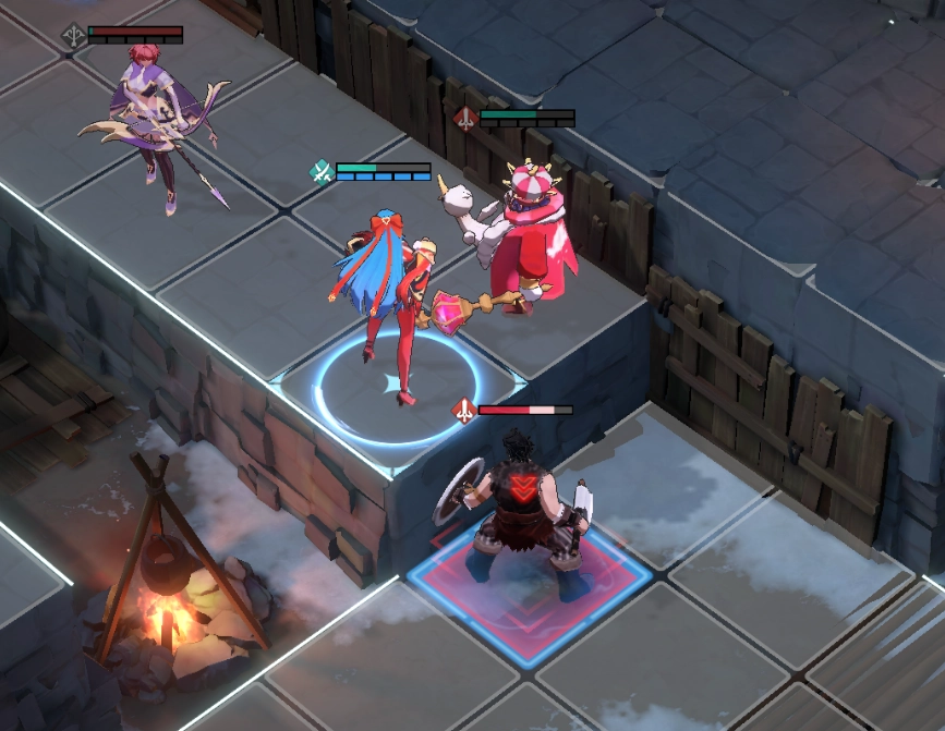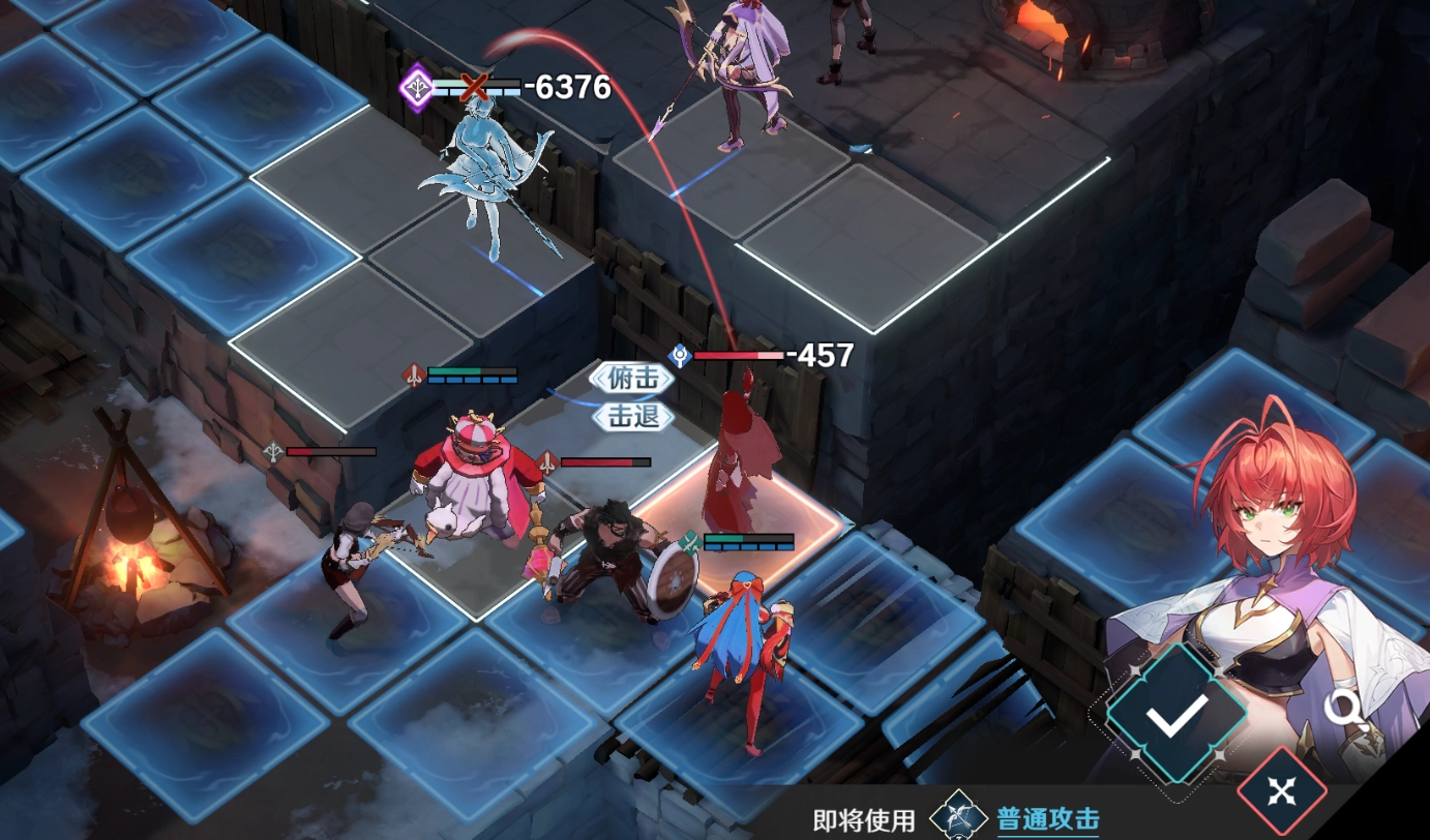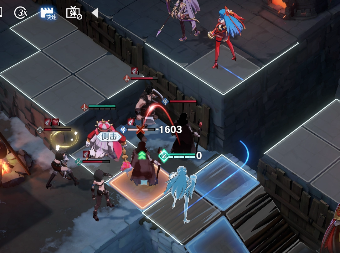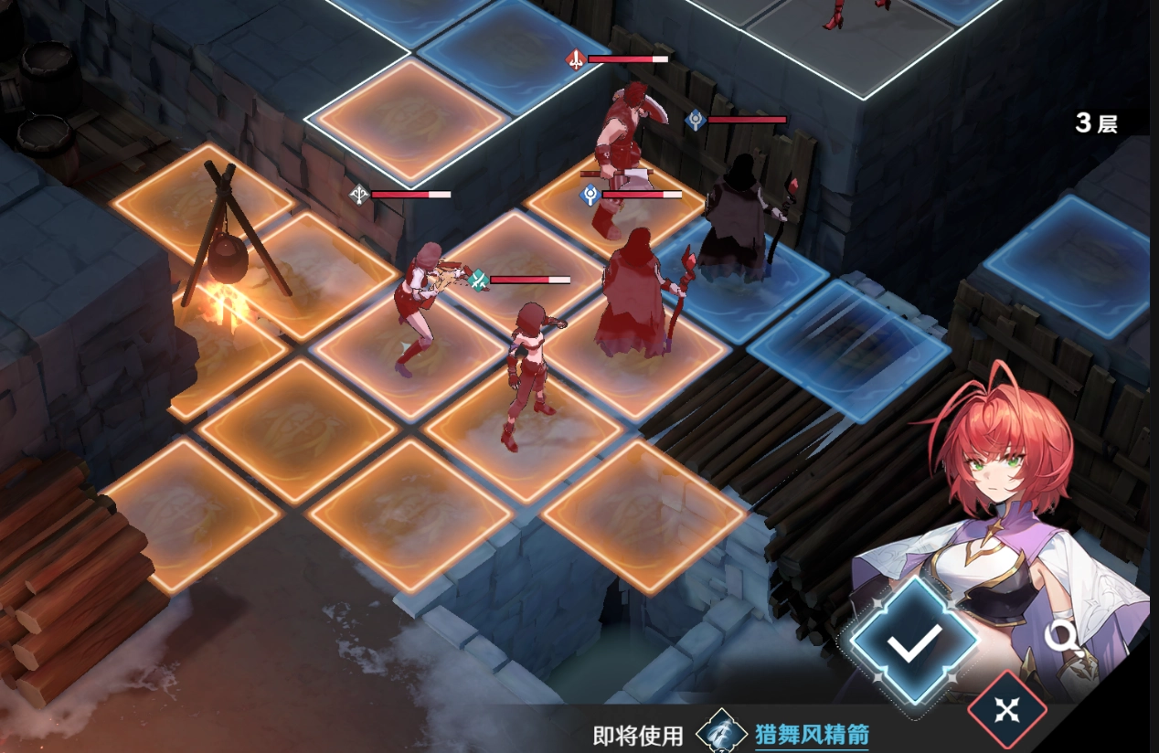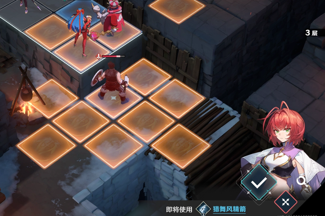 第三关的难度较前两关大幅提升,敌人数量多且难以逐个引怪处理,再加上远程输出的弓箭手和机动性强、专偷残血单位的盗贼,使得战局十分棘手。玩家需要利用单位在高低差地形上的攻击范围机制,结合雪拉的技能【八相奥义·皆无】的高伤害,优先解决威胁最大的盗贼和弓箭手,以此降低敌方整体输出,避免角色在单回合内被多次普攻集火秒杀。