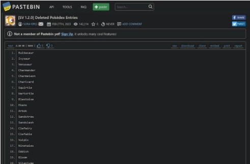 这位数据挖掘者还分享了自己在游戏里找到的所有条目的清单,总数有233只宝可梦之多。考虑到现在《朱/紫》里已经有一千多只宝可梦了,DLC或许不会把所有被删掉的条目都加回来。