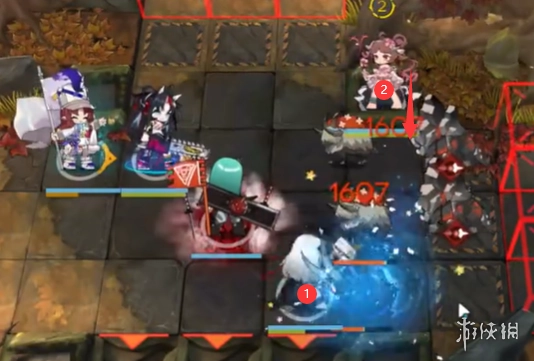 最后部署闪灵(向右)→ 拉普兰德(向上)。拉普兰德左侧有一个很适合浊心斯卡蒂的位置,带了浊心斯卡蒂的话可以在这里放置。