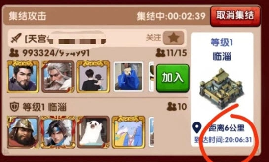 2、低战玩家千万不要随便发起集结,打不下来不说,还会让盟里不少人跟着白忙活。发起集结的大佬如果可以的话最好开麦沟通。在集结界面点击“集结进攻”,就能看到大佬的集结部队还有几分几秒到达目标;点击自己的主城再点“出征”,右下角会显示你部队的实时到达时间。要是想跟在大佬的集结车后面,那出发时间就得比大佬晚一点。现在游戏延迟比较高,建议等大佬出发两秒后,咱们再开始出征。