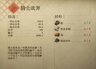 在《天国拯救2》里,骑士战斧可以说是最出色的斧头武器了。把它升到四级后威力就达到了顶峰,算得上是当前版本中最顶尖的斧类装备。