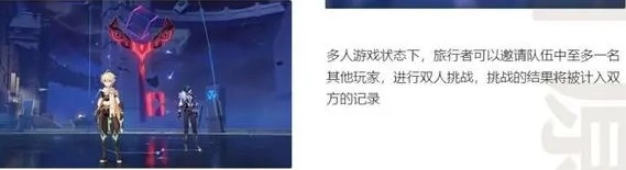 4、在多人游戏模式中,旅行者能够邀请队伍里最多一名其他玩家,开展双人挑战,挑战的结果会被记录到双方的游戏数据中。