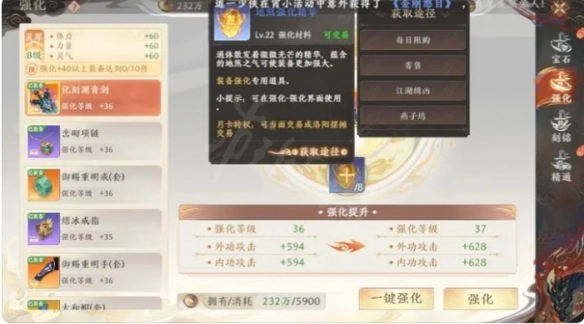 装备强化是《天龙八部2》手游里的特色玩法,对少侠提升战力有着举足轻重的作用。和装备精炼不一样,装备强化是在装备基础属性上进行加成。下面给大家介绍下装备强化的细节。