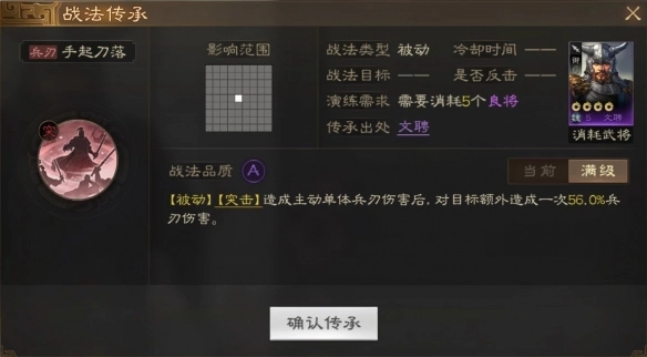 [被动] [突击]触发主动单体兵刃伤害后,会对目标追加一次56.0%的兵刃伤害。