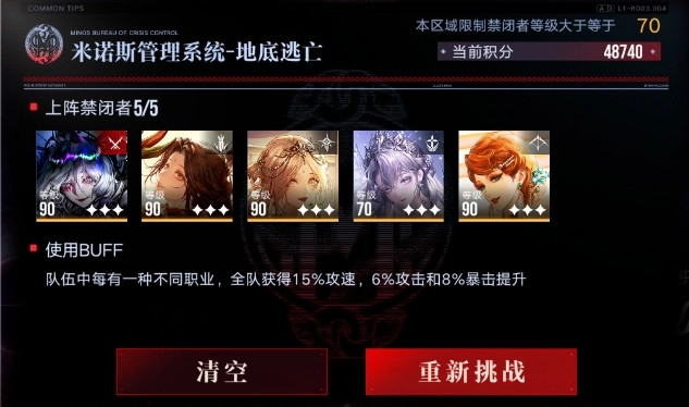 buff选择07,禁闭者可以依据自身box灵活替换,只要带上五个不同职业就行。