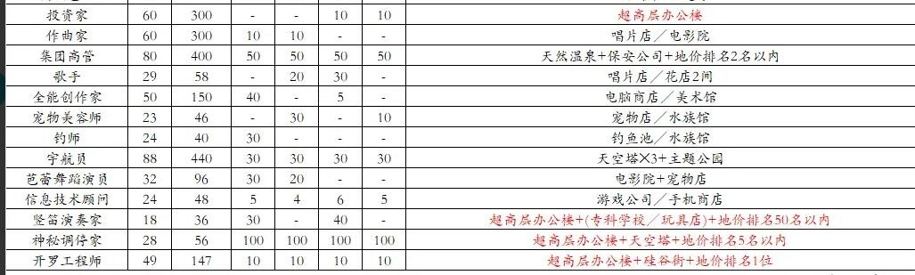 都市大亨物语是一款十分有趣的模拟经营类手机游戏,目前游戏共推出了69种不同职业。解锁职业需要在对应的产业旁边建造办公楼,通过办公楼来发现职业。部分职业与城市规模相关,务必在城市达到相应规模时解锁该职业,一旦城市规模进化后,就无法再解锁该职业,相当于永久失去了这个职业。今天我们为大家带来《都市大亨物语》雷霆版的职业一览表分享,感兴趣的玩家可以来看一看!