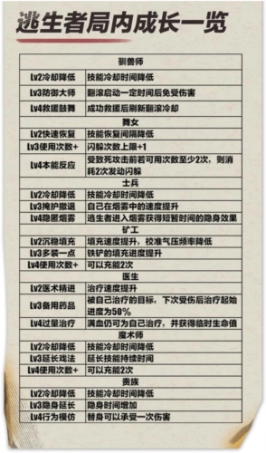 新模式也为追捕者与逃生者准备了各自的局内成长。