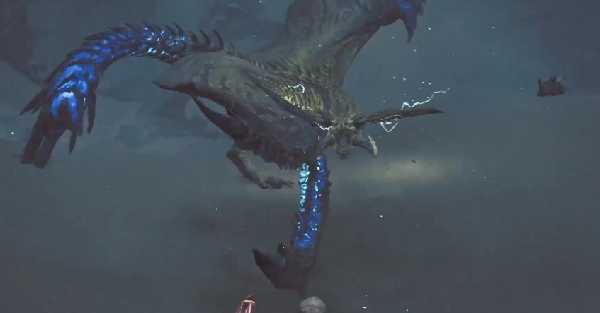 煌雷龙先是提前蓄力,接着骤然腾空至半空进行二次蓄力并锁定目标,随后便朝着目标释放出强劲的雷电远程攻击。