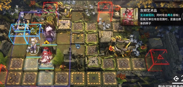 在右侧蓝门的下方放置黍,这样就能给娜仁图亚以及后续要摆放的阿斯卡伦补充一下状态。