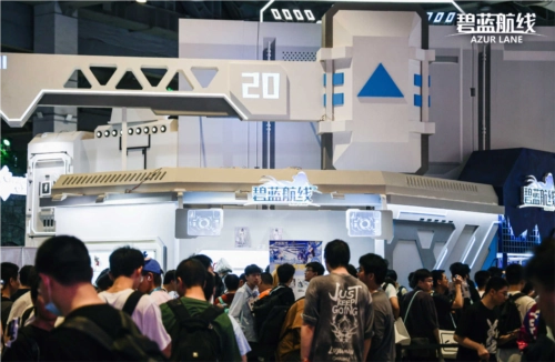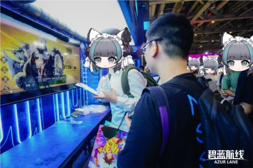 绕过《碧蓝航线》展区正面,侧面的互动区聚集了更多现场玩家。展台准备了“舰船建造”和“阵营对抗”两种趣味小游戏,参与即可赢取【港区战术目镜】【港区清凉小透扇】等礼品,拿到礼品的玩家们都喜笑颜开,满意地离开了。