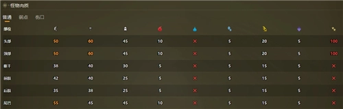沙海龙对雷属性的抗性较弱,它的弱点部位是嘴巴;头部不仅可以破坏,而且破坏后一定会掉落素材;尾巴则能够被切断。