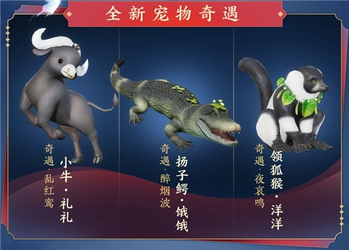 在江湖中闯荡,有幸邂逅一段奇妙的缘分。三只全新的宠物奇缘跟宠“洋洋”“礼礼”“饿饿”初次来到这里,不经意间与它们相遇,有了这些伙伴相伴,增添了许多乐趣!