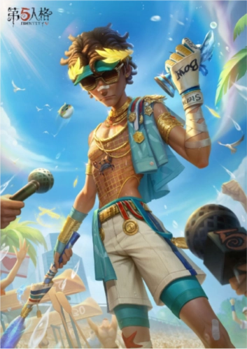 【稀世时装】击球手-冠军舵手头戴碧色鸭舌帽,架着鸦青色墨镜,鎏金橄榄叶帽带泛着璀璨光芒,既显青春活力,又藏几分沉稳老练。鼻梁上的晒伤痕迹已被他习惯地贴上创可贴。他身着金色渔网背心,左肩搭着天蓝色浴巾,上面缀满旧时奖牌。古铜色肌肤上,晶莹的水滴顺着肌肉滑落,折射出阳光的斑斓。手边一支晶蓝色船桨已折断,桨身缠绕着领航旗帜。他曾是万众瞩目的冠军舵手,可往昔回忆却如海藻般时时缠绕心头。
