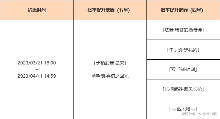 2023年3月21日至2023年4月11日二:祈愿1. 时间:3月21日18:00至4月11日3:59