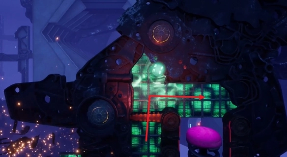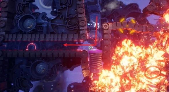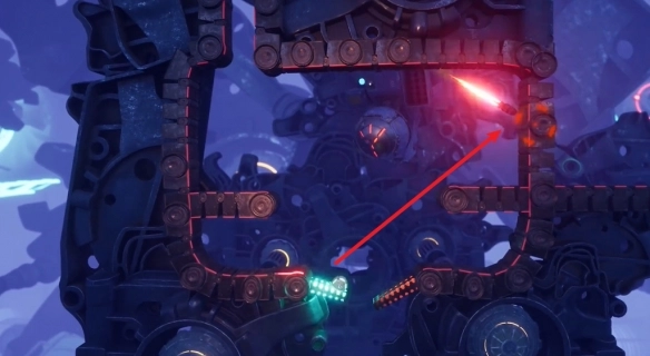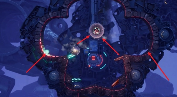 这里得先把BOSS吸出来,接着借助场景里的机关毁掉最上方的装置。