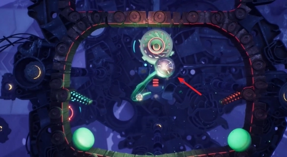 进入新场景后,建议大家先借助下方的机关把球弹到二层的凹槽位置,记得先将球推到机关上再触发弹射,这样能提高成功的概率。
