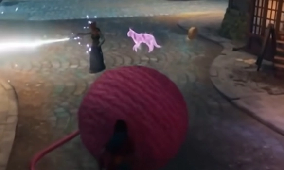 在魔法主题的支线关卡里,那个粉红色的毛线球,是能够越推越小的。