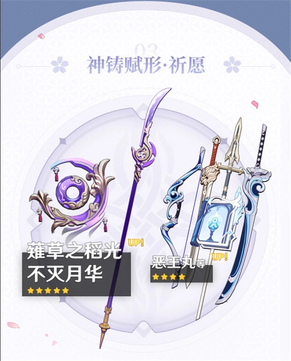 总结:总的来说,因为月华污染了武器池,我建议平民强度党不要为了碰运气去抽这个武器池,毕竟歪到月华的代价不小——它的强度和泛用性都很低。0命雷神即便没有薙刀,输出虽会略降,但核心辅助能力并未受影响;不过要是有2命及以上雷神的氪佬,还是得抽一把薙刀。