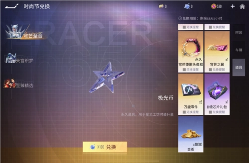 在本期时尚节中,除了暗夜魅影涂装-深渊堕歌、动效轮毂-童话镇&粉色甜心以及十余款全新外观即将上架外,车手们还能在兑换商店用外观兑换币换取极光币,为两套天使时装完成升级。