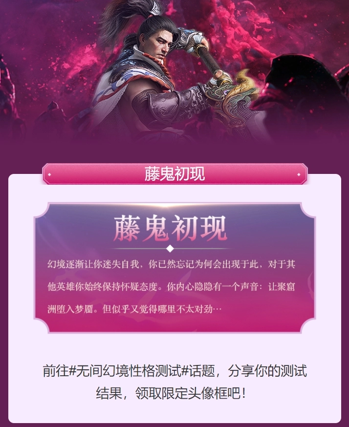 《永劫无间》近期上线了全新模式“无间幻境”,官方为预热该模式推出了一项趣味性格测试。测试包含10道题目,系统会依据玩家的答案判定其更偏向哪个阵营。