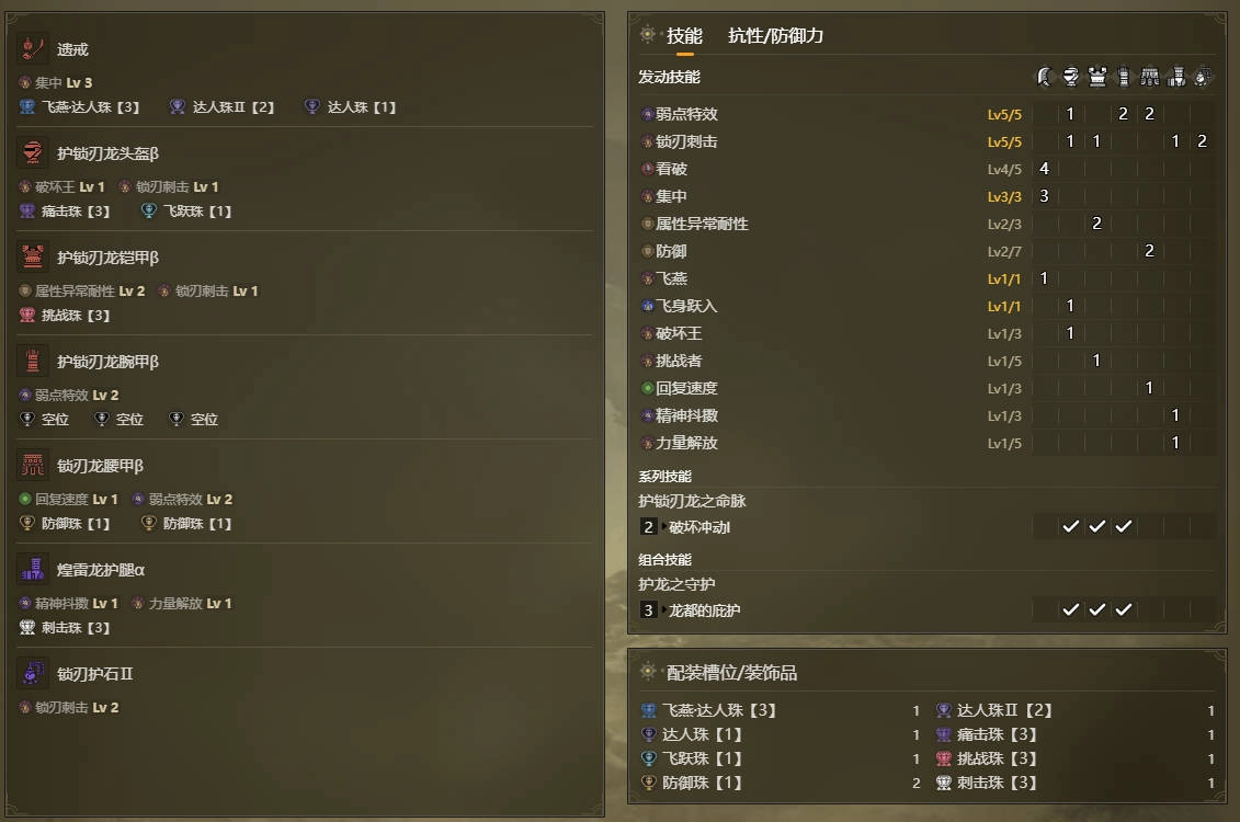 身体部位所配备的是护锁刃龙铠甲β型号。