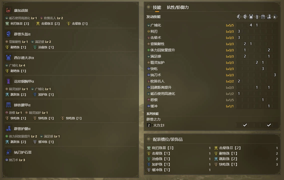 下面为大家介绍《怪物猎人:荒野》里狩猎笛的毕业装备组合,该配装采用的武器是康加战鼓,这是一款均衡属性的武器,同时具备攻击与辅助功效,比较适合团队协作。