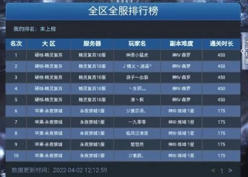 这支全球首个通关的小队来自硬核-精灵复苏10服,通关耗时450秒,成员分别为:神勇小猛虎、丿情义丶逍遥℡、浪子~血狼、丶东邪灬、清丶枫。