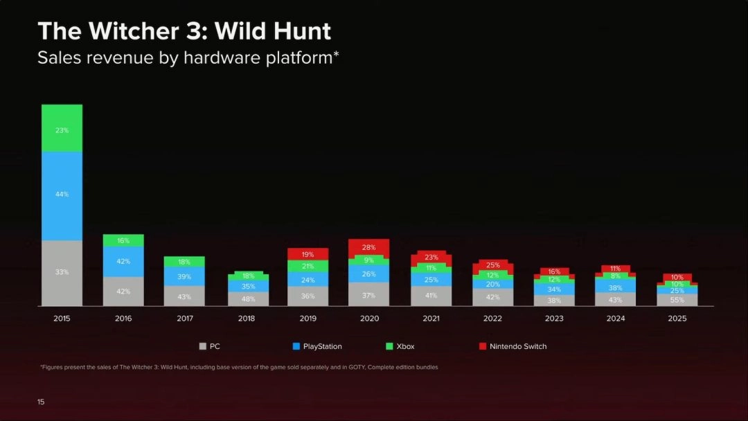 波兰游戏工作室CDPR于3月20日公布了2025年的业绩报告,整体销售态势十分强劲,利润收入创下工作室成立以来的历史第二高纪录,尤其是近年来重点布局的任天堂平台表现尤为突出。