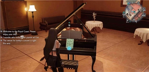 这架钢琴坐落在皇家海岸。主线任务皇家演奏会进行时,蒂法或爱丽丝会自动拾取相关物品,完全不必担心错过。皮亚佐拉不会在第六章现身,因此得等他出现在第三首钢琴曲的位置时,才能领取奖励。就算这次没拿到A级评价也不要紧,后续可以在任意一架钢琴上重新弹奏。