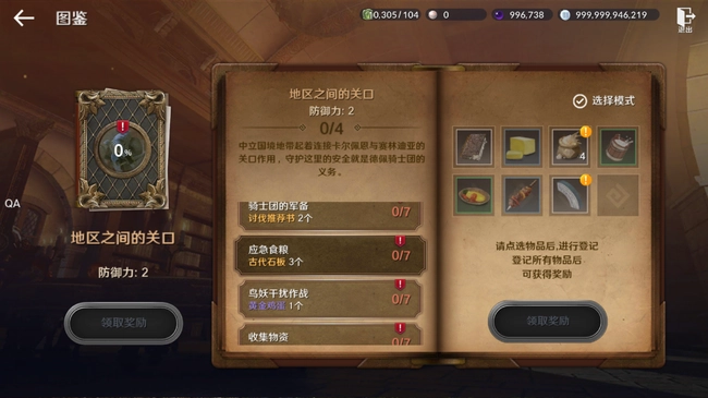 奖励:这本图鉴包含4项内容,待所有内容都登录完成后,即可获得防御力+2的奖励。