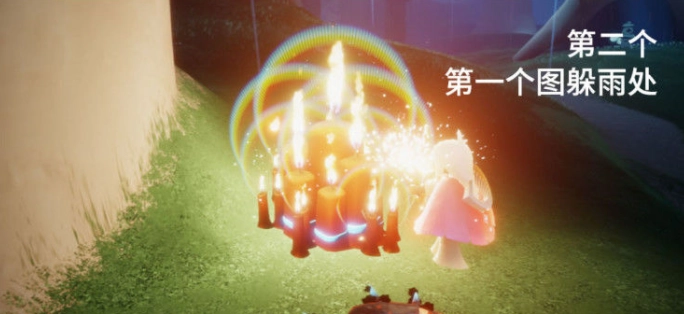 第二个大蜡烛的位置在雨林第一个图的躲雨处。