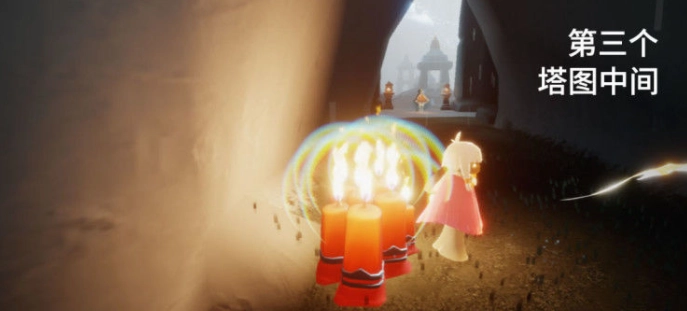 第三个大蜡烛的位置在雨林塔图的中间区域,玩家来到这里就能找到第三堆大蜡烛。