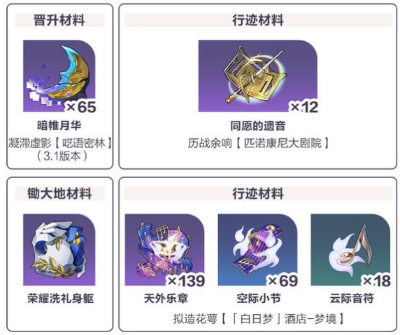 暗帷月华×65、高级经验书×290、信用点×30万