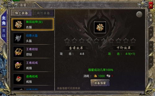 消耗黑铁矿石可对人物装备进行强星操作,装备品质越高,其能达到的强星最高阶等就越高。强星后装备属性会得到提升,并且同一部位的低品质装备所拥有的强星阶等,能够传承给该部位的高品质装备。
