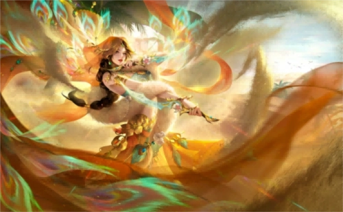 荆十三娘五星将星“笑傲江湖”头上的轻纱随风飘动,手持双刃在沙漠中起舞,如同盛放的沙漠玫瑰!