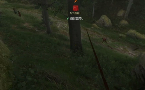 在“为了胜利”这个任务中,你会遇到倒下的大树挡住前进的道路,任务提示要求你绕过这个路障。