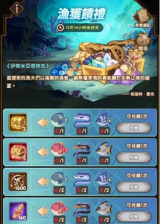 参与活动能够获取各类鱼获,集齐相应种类的鱼获还可解锁对应的奖励。
