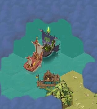 回到地图里的上方区域,找到港口并对其进行修复,同时击败港口的海盗船。