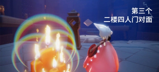 第三个大蜡烛的位置在禁阁一楼二楼四人门的对面,玩家到了这里就能看到第三堆大蜡烛。