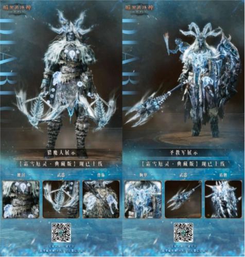 《暗黑破坏神:不朽》推出全新典藏版时装【霜雪厄灵】,设计灵感源自霜雪与兽骨——以冰晶塑其形,以兽骨为其架,摆动间冰屑簌簌飘散。八大职业的武器均取材于极寒之地永不消融的玄冰,通体呈现从蓝白到透明的冰晶质感,挥动时寒气自动流转,似有澎湃冰霜之力暗藏其中。这套时装兼具原始野性的震撼张力与冰晶特效的华丽质感,为玩家带来一场极具冲击力的视觉盛宴。