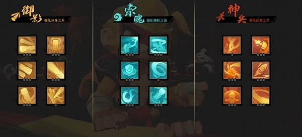 关于觉醒,大致可分为三个方向:【索魄】能够增强镇妖之法、【御影】能够增强分身之术、【神兵】能够增强武器之力。