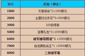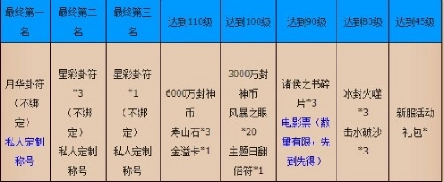 活动内容:在“新服特供礼盒“中将有”冲级送礼“和”功力送礼“的选项,在活动结束前,达成以下等级目标就能得到对应物品。