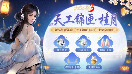 桂花的香气漫溢,明月的清辉洒满人间。全新推出的中秋限定饰品“桂月”系列,即将在9月9日与大家见面。其中,新品背饰“桂月良宵”与“千秋瑶影”,生动还原了“玉兔捣药”那可爱的经典场景。各位少侠若佩戴上新品头饰“月绒”系列,便能化身为灵动的玉兔侠客,行走江湖时定能与众不同。而腰饰“兔月圆”和头饰“思远客”也各具特色,满满都是中秋的韵味。