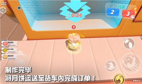 在2v2合作模式“美食加工厂”里,蛋仔得和队友携手合作,制作月饼。赛场边缘的货车顶部会展示队伍的订单要求,蛋仔要按照订单提交对应口味的月饼。每完成一份月饼订单,都能得到相应积分,在限定时间内积分更高的队伍就能胜出。