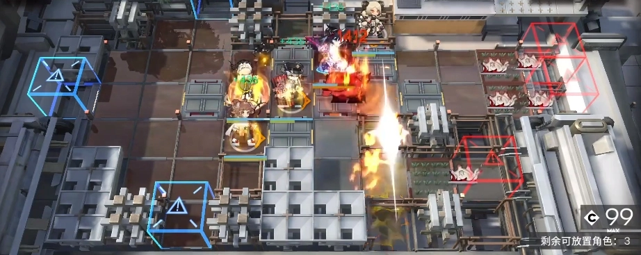 开局先部署风笛,让她和右侧的挂机敌人单挑