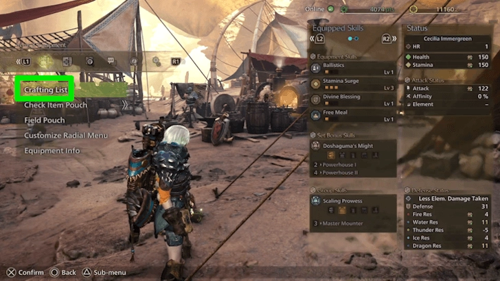请向下滚动到Crafting List,才能开始制作所需物品。