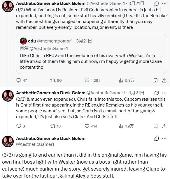 克莱尔的情况也一样,她的主角地位会得到进一步加强。Dusk Golem透露这款重制版或许会在今年内发布,而另一位爆料人NateTheHate则表示该作品计划于2027年上半年推出。需要注意的是,这些都只是传闻,大家要保持谨慎的态度对待。