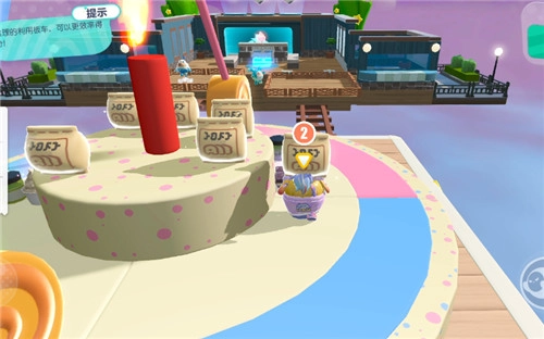 为提升食材运输效率,“蛋糕车间”给两队各配备了两台简易便捷的可移动板车。长长的轨道连接着制作区与食材供应区,蛋仔只要站在按钮上就能操控板车往返移动,轻松把队友送到对面。