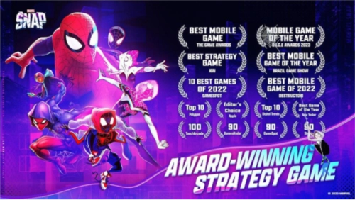 行业领域也对该产品给予了广泛关注和高度评价。《MARVEL SNAP》在海外上线后,接连获得【IGC最佳策略游戏奖】、【DICE最佳手游奖】、【苹果应用设计创新奖】、【Steam最佳随身游戏奖】等多个奖项,Toucharcade、gamesradar等媒体也都给出了90分以上的评测分数。